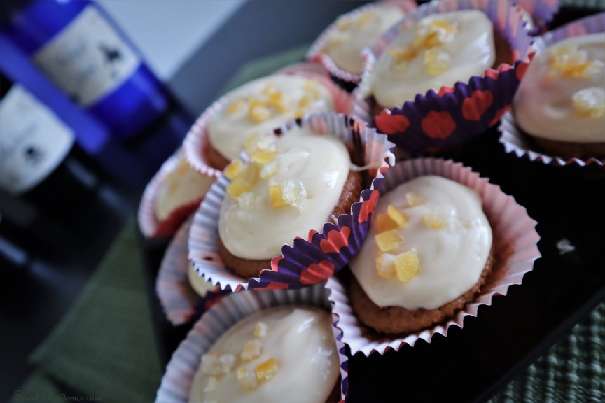 Laitoin kulhoon tuorejuuston, notkistin sen lusikalla (voi tehdä myös vatkaimella) ja lisäilin pikkuhiljaa tomusokeria suoraan paketista sekoitellen sitä tuorejuustoon. Kun koostumus oli mieluisaa, lisäsin kuorrutteeseen kinuskia noin puoli purkkia. Kuorrute kannattaa laittaa jääkaappiin tekeytymään, jos se tuntuu liian löysältä. En jaksanut pursottaa kuorrutetta, vaan lapoin sitä muffinsien päälle lusikalla. Lopuksi koristelin muffinsit appelsiininkuoripaloilla.
